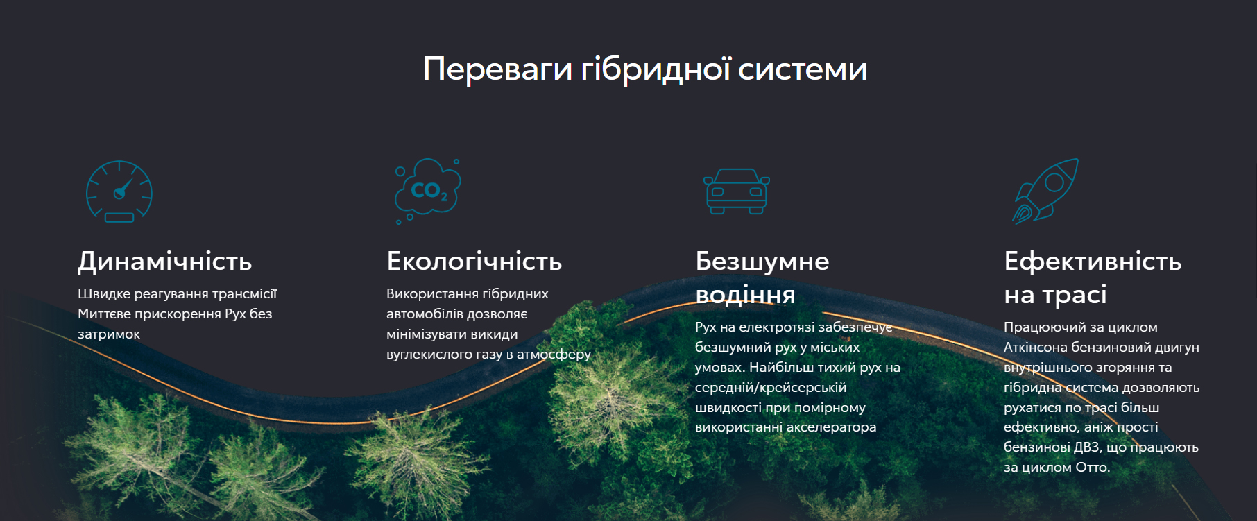 Сучасні гібриди Toyota створені на принципі синхронної роботи бензинового двигуна та високовольтної батареї. Така взаємодія дозволяє знизити витрати пального, рівень викидів і підвищити плавність руху. У результаті водій отримує поєднання високої ефективності, комфорту та надійності в щоденних поїздках.